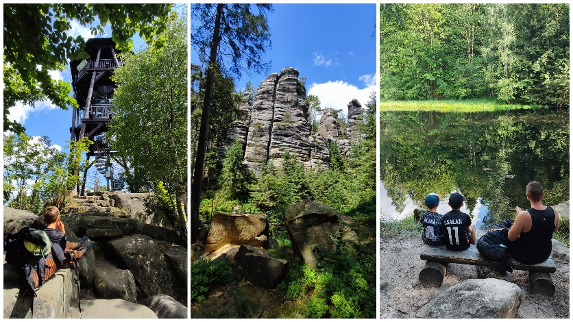 Zpět na novinky Teplické, Jiráskovy skály, zámeček Bischofstein, rozhledna Čáp