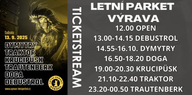 Srdečně Vás zveme na letní parket Výrava. 13.9.2025 VYSTOUPÍ: 12.00 OPEN 13.00-14.15 DEBUSTROL 14.55-16.10. DYMYTRY 16.50-18.20 DOGA 19.00-20.30 KRUCIPÜSK 21.10-22.40 TRAKTOR 23.20-00.50 TRAUTENBERK https://vyrava-letniparket.cz/vstupenky/ [video width="1920" height="1080" mp4="http://podnikamvhk.cz/wp-content/uploads/2025/05/DEBUSTROL-.-DYMYTRY-atd.-2025-VÝRAVA.mp4"][/video]